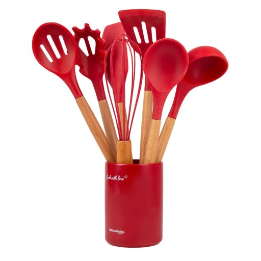 - w zestawie: trzepaczka, łyżka do spaghetti, łyżka, chochla, łopatka, łyżka z dziurkami i szpatułka.