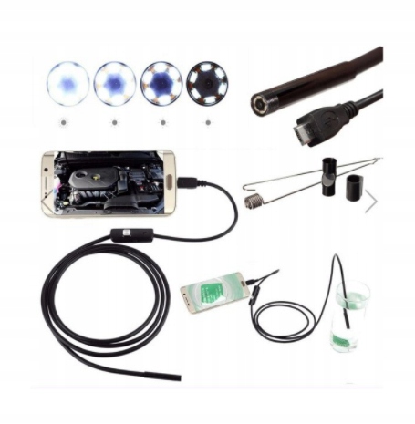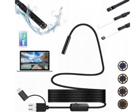 Wodoodporna kamera endoskopowa, inspekcyjna z wbudowanym oświetleniem LED pozwalająca oglądać niedostępne dla oka ludzkiego zakamarki. Możliwość podłączenia do komputera, tabletu i smartfona. Endoskop pozwala na obserwację trudno dostępnych miejsc, gdzie nie jesteśmy wstanie zajrzeć.