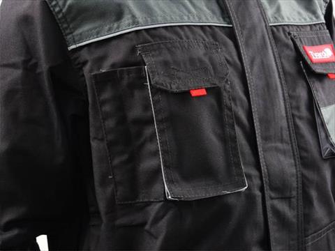- Wzmocnienia materiału na łokciach i kieszeniach