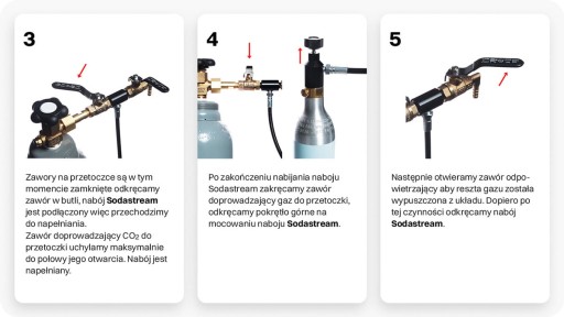 Do napełniania wymagane jest posiadanie butli z rurką syfonową w celu podawania fazy ciekłej CO2.