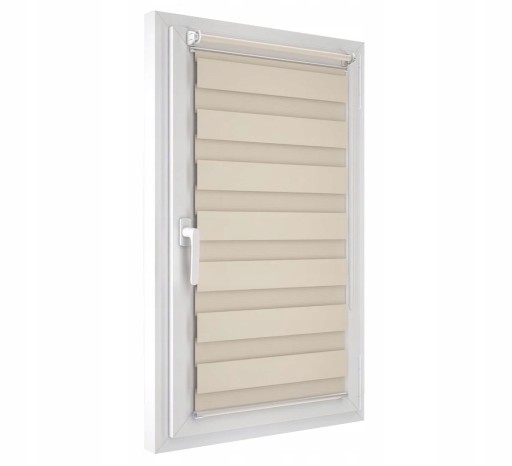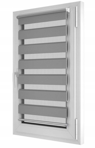 Roleta Mini Dzień Noc 4Dekor to dwufunkcyjna roleta z płynną regulacją poziomu zaciemnienia. System ułożonych naprzemiennie transparentnych pasów siateczki i pasów nieprześwitującej tkaniny pozwala całkowicie zasłonić okno lub wprowadzić do wnętrza subtelne światło. Mechanizm rolety umożliwia dowolną regulację dopływu światła do pomieszczenia. Roletę można także zupełnie podnieść, dzięki czemu pomieszczenie będzie bardzo jasne. Montaż rolety jest łatwy i bezinwazyjny – nie wymaga wiercenia ani użycia narzędzi.