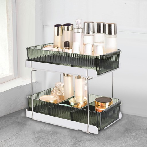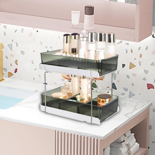 Wielofunkcyjny stojak do przechowywania: 2-poziomowa półka na biurko, kosmetyki do przechowywania, produkty do makijażu, akcesoria do włosów, biżuteria, materiały biurowe, przybory kuchenne itp.