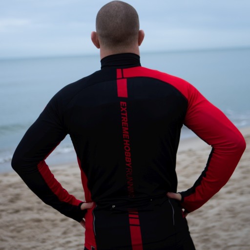 Zaawansowane technologicznie bluza męska do biegania i jazdy na rowerze, termoaktywna i kompresyjna.