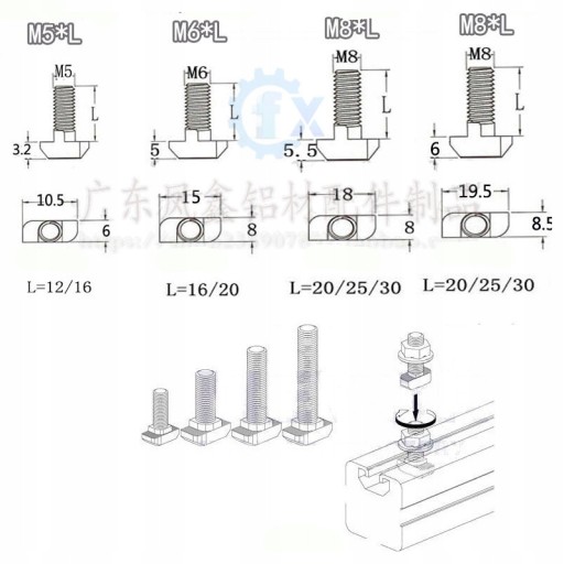Śruba młoteczkowa typu T z gwintem M5 jest dedykowana do profili aluminiowych 2020. Używany do budowy drukarek 3D, frezarek CNC, projektów robotyki, osłon maszyn, stacji roboczych itp.