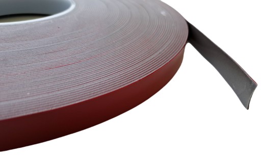 Taśma montażowa dwustronnie klejąca piankowa ze spienionego akrylu tworząca jednolitą, naturalnie lepką, elastyczną warstwę.