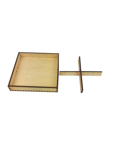 Opakowanie: Pudełko ze sklejki z przegródkami owinięte folią termokurczliwą