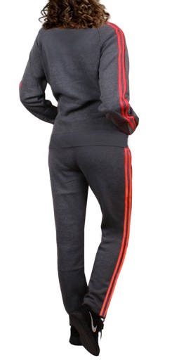 Ciepły DAMSKI dres z lampasami DRESY stójka 954 granat M/L