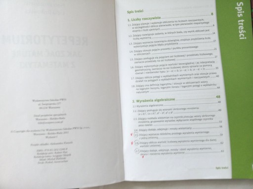 lekkie zagięcia na rogach okładki, przybrudzone brzegi, kartki czyste, kilka zaznaczeń na spisie treści w matematyce,