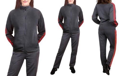 Ciepły DAMSKI dres z lampasami DRESY stójka 954 granat XL/XXL