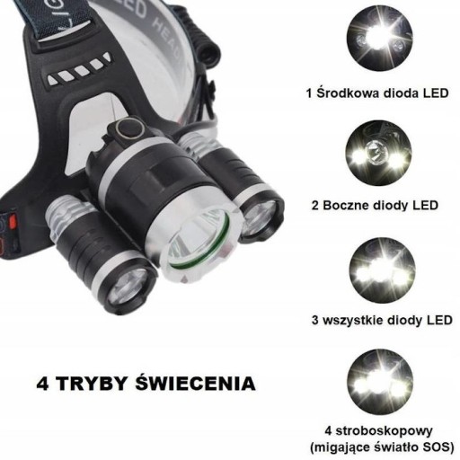 Latarka czołowa 3x LED CREE XML