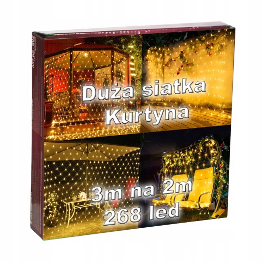 LAMPKI 268LED DUŻA SIATKA KURTYNA NA BIAŁYM KABLU (ZEWNĘTRZNE, WEWNĘTRZNE) + PROGRAMATOR (8FUNKCJI)+ŁĄCZENIE