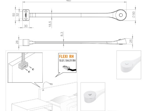 Kinkiet lampa lampka Flexi RH LED 12V z gniazdem USB do ładowania i włącznikiem, płaska głowica, silikonowana. Lampa LED Flexi RH to nowoczesna propozycja oświetlenia do sypialni przyczepy kempingowej lub kampera. Lampa posiada prosty i minimalistyczny kształt, który dopasujesz do swojego łóżka, a dzięki elastycznej szyjce skierujesz światło w dowolnym kierunku. Dzięki wbudowanemu wejściu USB naładujesz dodatkowo swój telefon lub tablet.