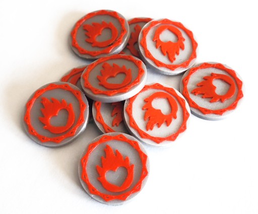 Tokeny idealnie zastąpią kartonowe żetony, uatrakcyjnią i poprawią czytelność na polu bitwy. Tokeny dwukolorowe.