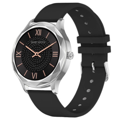 Piękny, biżuteryjny smartwatch z czarnym paskiem, model 27-07 marki PACIFIC stworzony dla eleganckich kobiet szukających nowoczesnego urzadzenia o wyróżniajacym się wyglądzie. Zestaw ten opiera się na zegarku z okrągłą obudową z oszlifowanymi brzegami szkła na kształt diamentu, do której dopasowano czarny pasek. Dobry stosunek jakości, wyglądu, funkcjonalności i ceny. Zegarek PACIFIC SMART 27 należy do kolekcji smartwatchy, czyli inteligentnych zegarków naręcznych, które zdecydowanie wykraczają poza funkcję wskazywania czasu. Zdecydowanie można uznać go za zaawansowane technologicznie urządzenie, o rozbudowanych opcjach, zamkniętych w formie zegarka. Jego ogromnym atutem jest piękny wygląd, dzięki czemu może pełnić rolę stylowego dodatku na każdą okazję - na nadgarstku prezentuje się bardzo modnie, zdecydowanie przyciąga spojrzenie. Ukryty w obudowie kolorowy wyświetlacz daje łatwy dostęp do rozbudowanych funkcji, a obsługa jest przystępna i intuicyjna.
