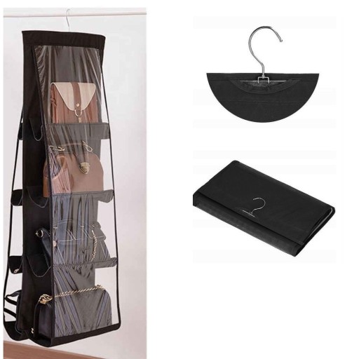 Łatwy w montażu i demontażu, dzięki metalowemu wieszakowi Organizer z łatwością można przewiesić w dowolne miejsce Produkt dzięki metalowym zaczepom trzyma się pewnie więc bez problemu możemy powiesić na nim komplet torebek - pasuje do większości drzwi uchylnych.