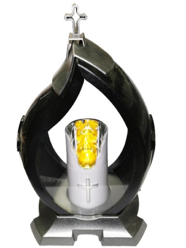 płomień LED odbija się w posrebrzanej osłonce potęgując efekt świecenia