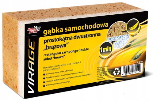 Przeznaczona do mycia szyb i karoserii samochodowych, jaśniejsza strona gąbki przeznaczona do zmywania owadów z karoserii i szyb samochodowych.