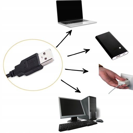 - ⚙️ Długość kabla - około 2m zakończony wtyczką usb