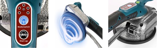 Maszyna do poziomowania wibratorów do płytek jest wyposażona w baterie litowe 2×21v, 2500mAh. Ładowanie 3 godziny, 6-8 godzin przy użyciu