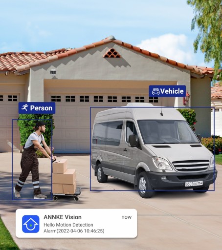 Gdy ta kamera monitorująca wykryje ruch ludzi i pojazdów, będziesz otrzymywać powiadomienia w czasie rzeczywistym. Aby uzyskać większą ulgę, możesz ustawić linię/strefę tak, aby odpędzała niepożądane osoby, uruchamiając konfigurowalną syrenę.