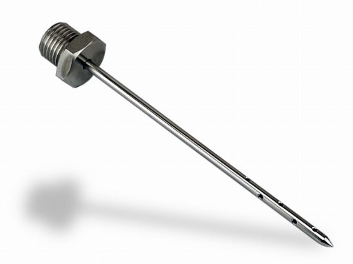 Igła posiada 10 otworów iniekcyjnych. Długość całkowita igły to 110mm, a długość czynna to 95mm. Posiada atest PZH. Wysyłany na życzenie klienta. Wykonana ze stali kwasoodpornej.