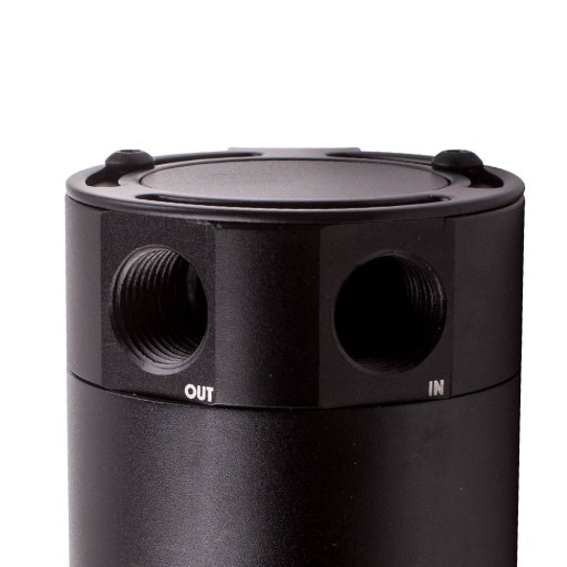 - Wewnętrzne odchylenie powietrza umożliwia dłuższą cyrkulację powietrza, zapewniając, że cały olej opada na dno puszki, a tylko czyste powietrze przechodzi przez brązowy filtr 50 mikronów do wlotu.