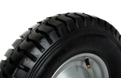 Opona wykonana została z wysokiej jakości gumy, która posiada 8 płócien oraz uniwersalny wentyl samochodowy.
