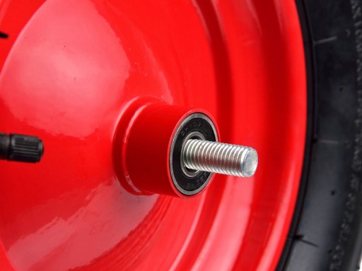 Zawinięta krawędź felgi, przy dużym obciążeniu nie powoduje wrzynania się felgi w oponę i jednocześnie zwiększa wytrzymałość całego koła. Wysokiej jakości podwójne łożysko kulkowe zapewnia płynną i przyjemną pracę. Koło jest proste w montażu, o średnicy otworu na oś 12 mm.