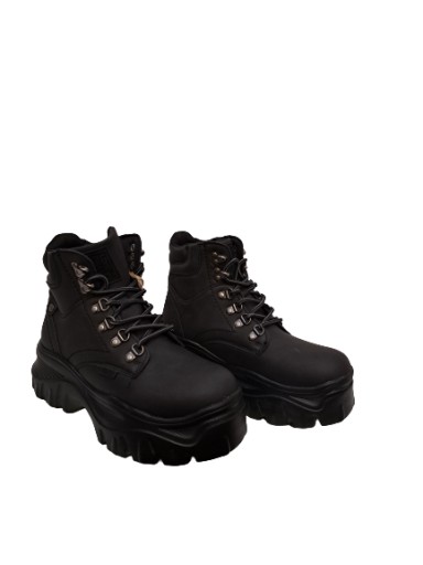 Botki — trapery firmy Big Star wykonane z eko skóry. Posiadają wkładkę Memory Foam System, która zapamiętuje kształt stopy, zapewnia doskonałe dopasowanie, absorbuje wstrząsy, jest odporna na odkształcenia oraz pozwala na odparowanie wilgoci i regulację temperatury. Masywna podeszwa o grubości 5,5 cm oraz płaski obcas sprawiają, że botki są stabilne. Model ze sznurowaniem.