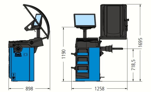 Wyważarka należy do nowej gamy modeli firmy RAVAGLIOLI, nowe oprogramowanie i szata graficzna, pomiar bicia felgi przy użyciu ramienia pomiarowego.