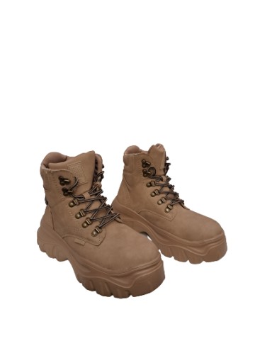 Botki — trapery firmy Big Star wykonane z eko skóry. Posiadają wkładkę Memory Foam System, która zapamiętuje kształt stopy, zapewnia doskonałe dopasowanie, absorbuje wstrząsy, jest odporna na odkształcenia oraz pozwala na odparowanie wilgoci i regulację temperatury. Masywna podeszwa o grubości 5,5 cm oraz płaski obcas sprawiają, że botki są stabilne. Model ze sznurowaniem.