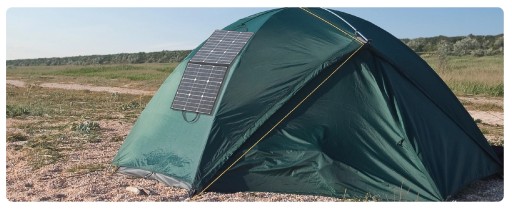 Przenośny panel solarny o mocy 50W z wyjściem USB i DC kompatybilny z większością generatorów słonecznych i urządzeń na rynku.