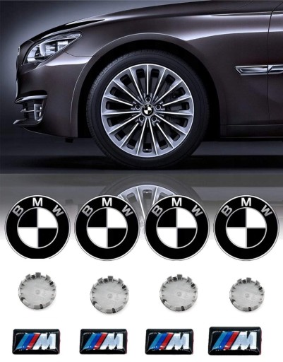 4 dekielki + 4 naklejki M POWER (M PAKIET) na felgi