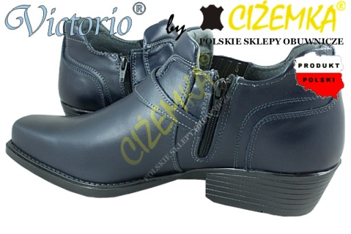 VICTORIO KOWBOJKI NISKIE PÓŁBUTY ZE SKÓRY NATURALNEJ model 1026 GRANATOWE