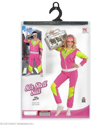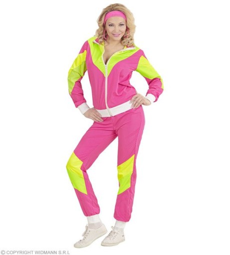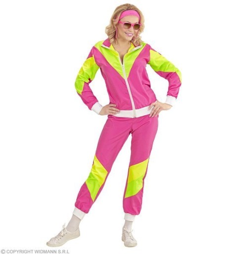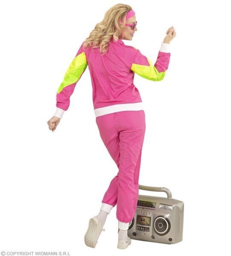 Różowy dres z kolorowymi wstawkami w stylu lat 80.