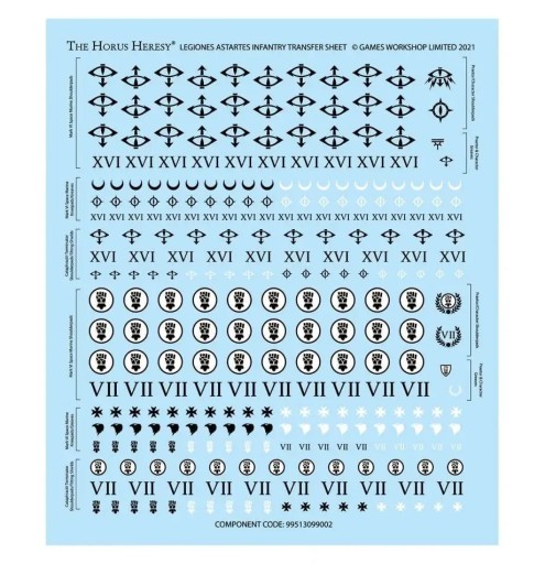 Zestaw składa się z 233 plastikowych elementów i jest dostarczany z arkuszem transferowym pojazdów Legiones Astartes. Miniaturki są dostarczane niepomalowane i wymagają montażu - zalecamy użycie kleju Citadel Plastic Glue i farb Citadel.