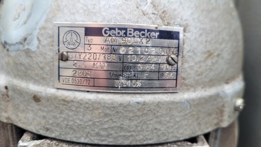 Witam , posiadam do sprzedania pompy próżniowe przywiezione firmy Becker. Moc 3KW , 2800 obrotów , 230/310 m3/h , 300/150 mbar , waga 48KG lub i mocy 2.5KW, 2800 obrotów, 320m3/h, 200 mbar, waga 42KG. Możliwa wysyłka. Więcej informacji można znaleźć na zdjęciach lub podam przez telefon.