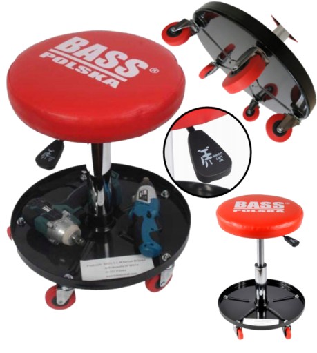 ✅ Taboret warsztatowy z pneumatyczną regulacją wysokości w zakresie 400 - 530 mm.