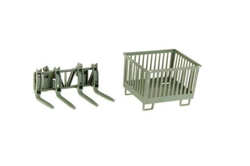 Manitou z hederem, widły do siana, widły od wózka widłowego, hak z linką jako dźwig, końcówkę służącą jako