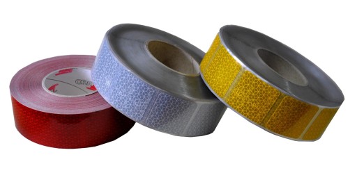 Taśmy do oznakowania pojazdów wykonane są z trwałej, mikropryzmatycznej folii odblaskowej typu 3.