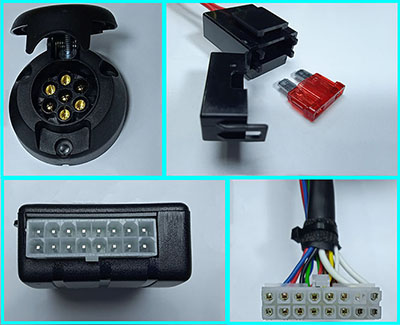 -UNIWERSALNY MODUŁ Z ROZBUDOWANĄ WIĄZKĄ ELEKTRYCZNĄ I GNIAZDEM 7 PIN. ŁATWY MONTAŻ MODUŁU GDYŻ WSZYSTKIE PRZEWODY DO MODUŁU WPINANE SĄ ZA POMOCĄ JEDNEJ ROZBUDOWANEJ KOSTKI. MODUŁ TYPU PLUG AND PLAY.