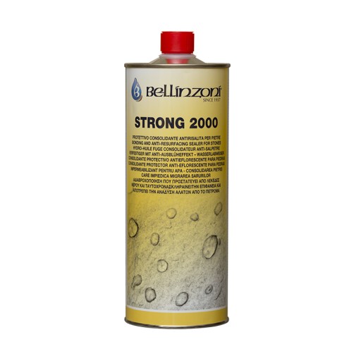Impregnat wzmacnia i chroni marmur, granit i kamień przed dostępem wody i wilgoci. Idealnie chroni przed kwaśnymi deszczami. Bardzo ważną właściwością Strong 2000 jest zdolność scalania: dzięki specjalnej formule wzmacnia kruche i delikatne kamienie (wapienie, piaskowce itp.), kamienie zniszczone przez działanie środowiska naturalnego, które bez odpowiedniego utrzymania będą dalej niszczały.