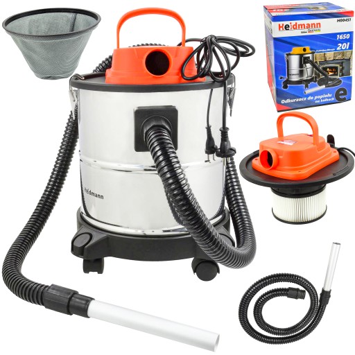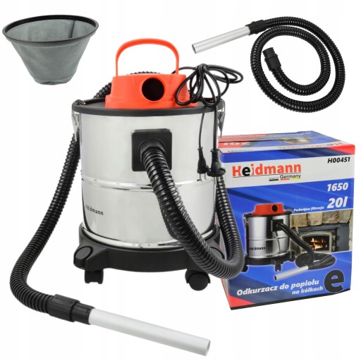 HEIDMANN - ODKURZACZ DO POPIOŁU KOMINKA 20L 1650W - PODWÓJNE FILTROWANIE