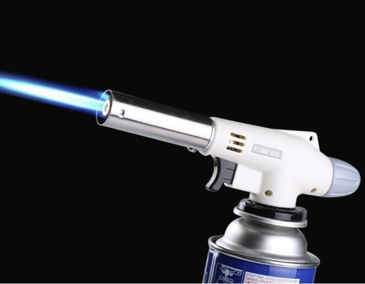 Wystarczy odkręcić zawór gazu i nacisnąć spust. Siłę płomienia dobiera się poprzez regulowanie pokrętła zaworu. Palnik zasilany jest gazem z kartusza gazowego.