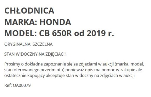 . РАДИАТОР HONDA CB 650 R 650R 19 + CH0