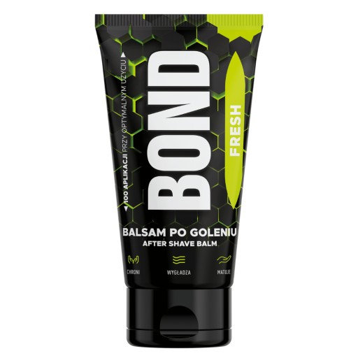 Łagodny balsam po goleniu Bond Fresh pielęgnuje podrażnioną skórę po goleniu. Regularnie stosowany chroni przed podrażnieniami wywołanym goleniem, chłodzi, eliminuje zaczerwienienia i nieprzyjemne uczucie ściągnięcia skóry. Wygładza i matuje skórę, szybko się wchłania. Polecany do codziennego stosowania zwłaszcza wrażliwej skóry twarzy.