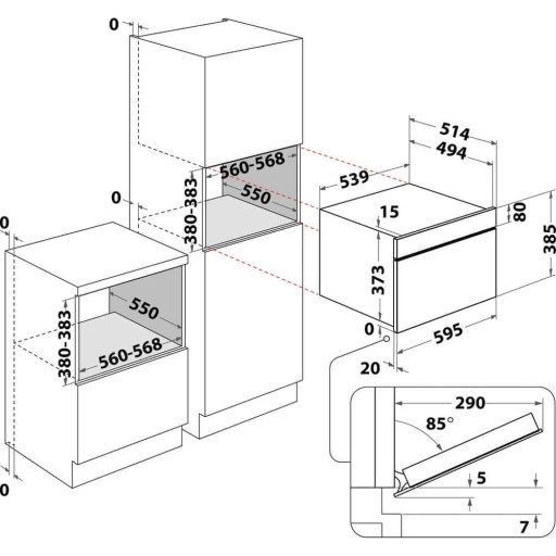 - Minimalna wysokość niszy 380