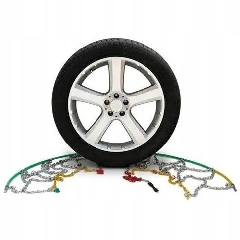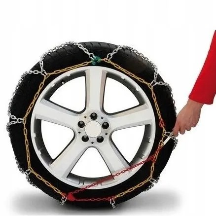 Diamentowy (rombowy) wzór łańcuchów śniegowych zapobiega poślizgom bocznym.