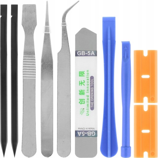 Niezbędny zestaw przeznaczony przy pracach związanych z wymianą wyświetlaczy, otwierania obudów urządzeń tj. telefony iPhone, Samsung, Sony, Huawei itp., tablety, nawigacje, laptopy oraz wielu innych.
