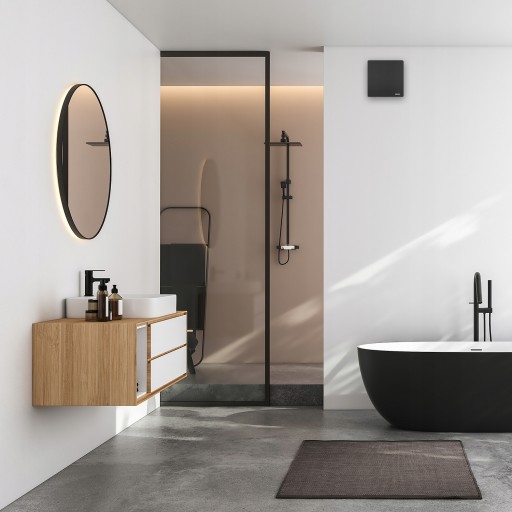 Wentylatory łazienkowe Harmann NAX - Ich nowoczesny design sprawia, że doskonale pasują do nowoczesnych łazienek, dodając im elegancji i stylu. Obudowa w całości wykonana została z odpornego na uderzenia tworzywa sztucznego ABS w kolorze czarny matowy. Dzięki temu materiałowi, obudowa jest wytrzymała i odporna na uszkodzenia mechaniczne. Dodatkowo, matowe wykończenie sprawia, że nie nabiera ona odcisków palców i jest łatwa do utrzymania w czystości.